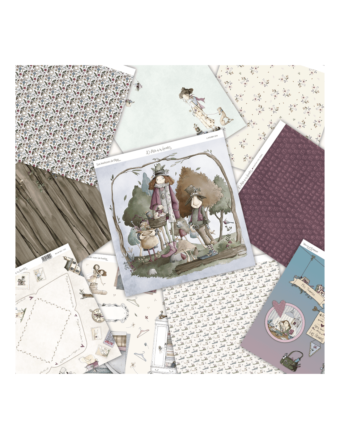 Surtido de 8 papeles aleatorios de diferentes colecciones de El Altillo de los duendes. No se repite ningún papel, pero puede repetirse la colección. Papeles de Scrap de 30,5x32cm y 190grs, libres de lignina y ácidos. Fabricado en España