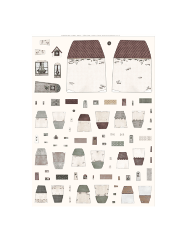 Panel con diferentes casitas navideñas y sus elementos para que las cuelgues del árbol, hagas una guirnalda o las coloques en casa. También incluye una casa más grande, para que hagas un cojín con ella.