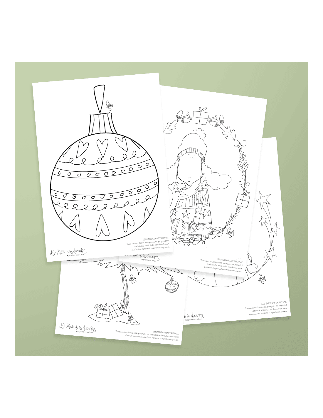 Este pack digital incluye un PDF con 4 ilustraciones de Nevy para que puedas decorar tus ventanas estas navidades.