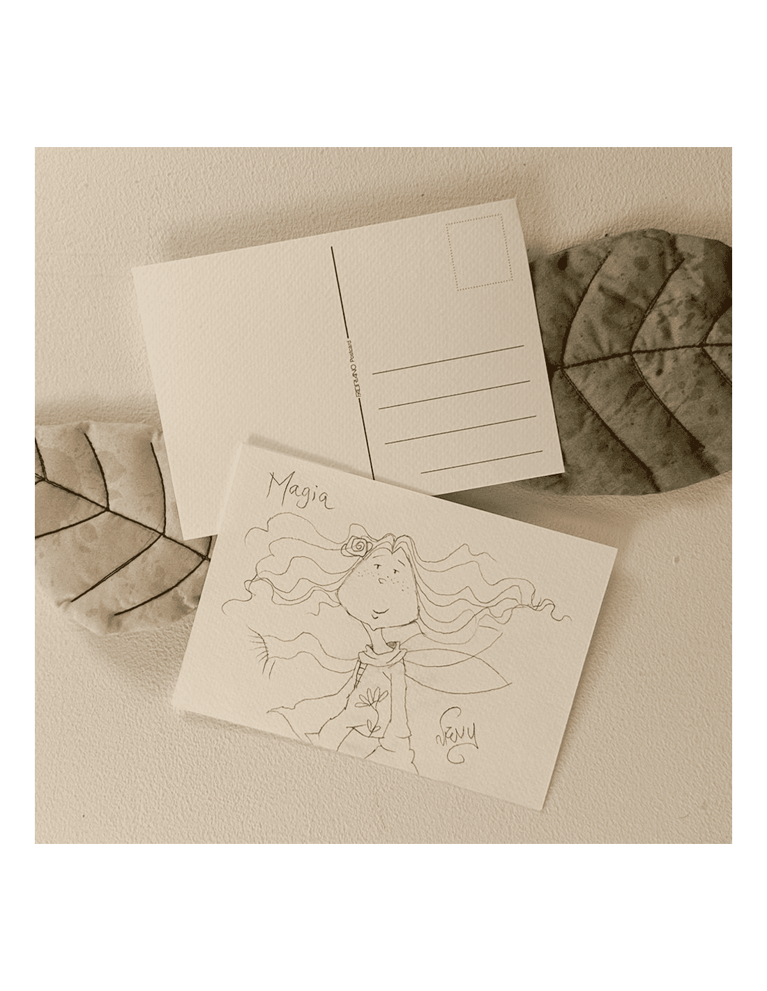 Postal con boceto original hecho a lápiz por Nevy, decora con su magia tu lugar favorito, ponlo en un rincón especial, o deja que llene de magia tu hogar.
