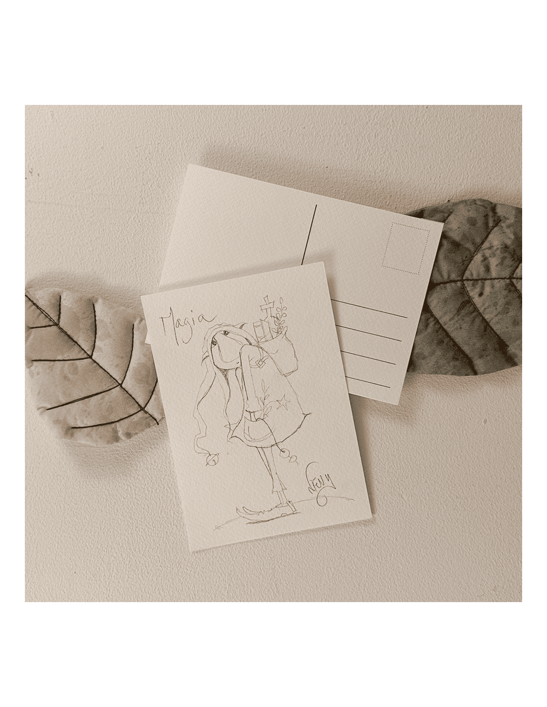Postal con boceto original hecho a lápiz por Nevy, decora con su magia tu lugar favorito, ponlo en un rincón especial, o deja que llene de magia tu hogar.