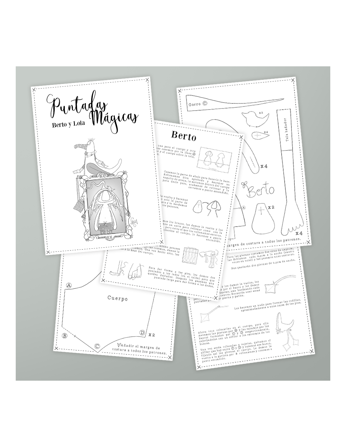 En el interior encontrarás los patrones para el proyecto: Berto y Lola, además de que la propia carpeta está impresa con de detalles del propio proyecto, no solo la carpeta es preciosa por fuera sino que también por dentro.