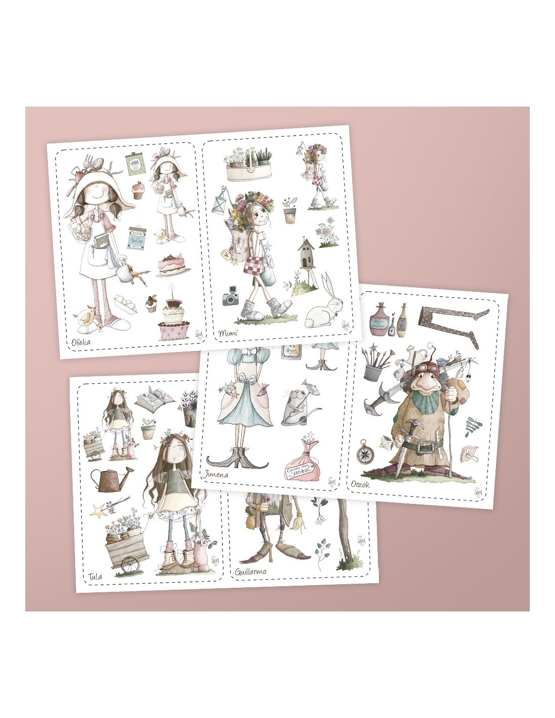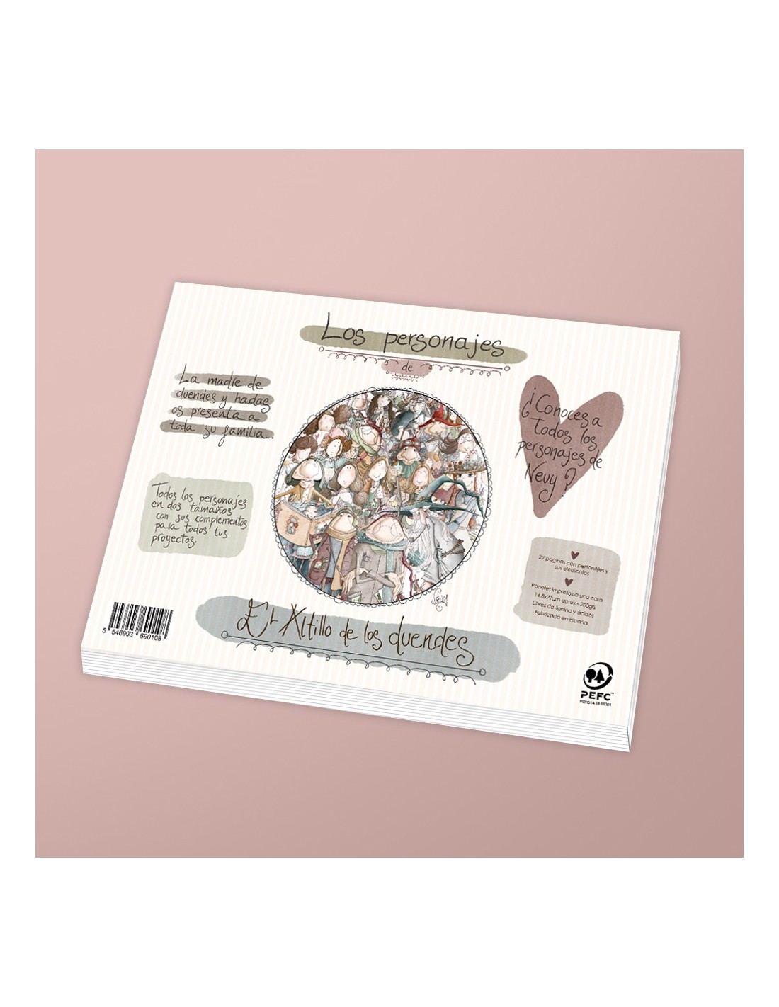 Bloc con los personajes favoritos de El Altillo de los duendes y sus elementos preferidos para recortar.